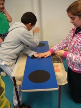 hand/oogcoördinatie, opmeten. Alle stagiaires werken