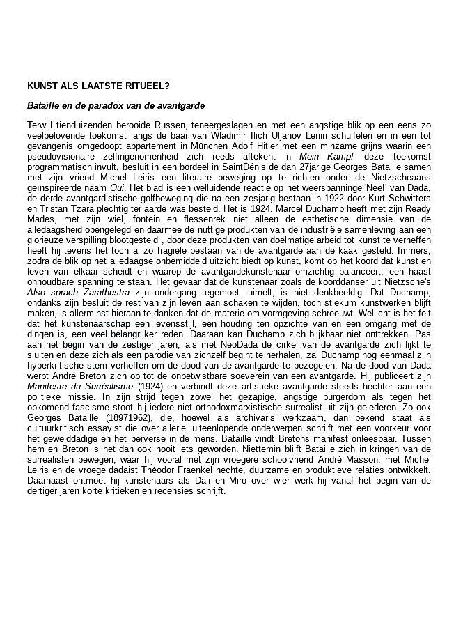 - 1994 "Kunst als laatste ritueel? Bataille en de paradox van de avantgarde"