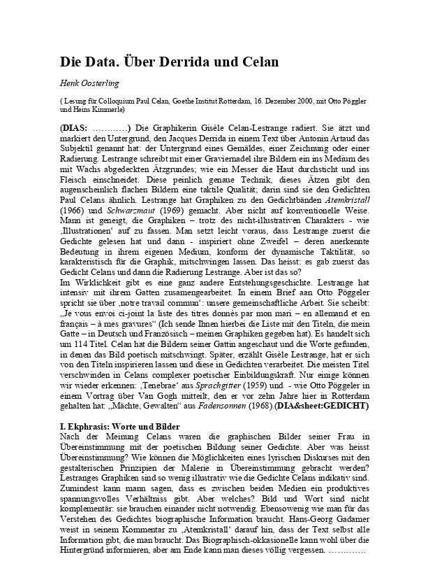 Die Data. Über Derrida und Celan